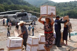 La tripulación del helicóptero ANX-2202 de la Armada de México lleva seis toneladas de víveres entregadas a damnificados por las lluvias de la semana pasada.