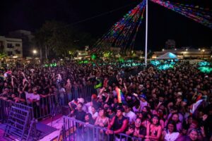Más de 20 mil playenses y turistas se dieron cita esta noche en la Plaza 28 de Julio para disfrutar de la explosiva presentación de la cantante dominicana Tokischa y la influencer mexicana Wendy Guevara, en el marco del #PridePlayaDelCarmen2025.